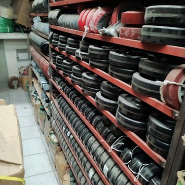 Ruedas giratorias, Rodillos a medida, baleros, Patines Hidráulicos y Apiladores Manuales